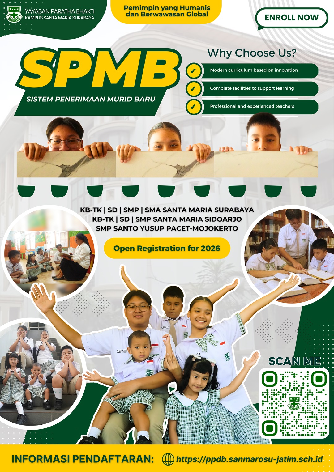 Serviam yang berarti "saya mau mengabdi" akan selalu jadi ajaran sekaligus pedoman yang melekat apapun profesi yang kita geluti saat ini. Sebab SMP Santa Maria Surabaya tidak hanya membuat kita pandai secara akademis, tetapi juga cerdas bersikap di tengah kemajuan zaman. (Reporter CNN Indonesia TV)