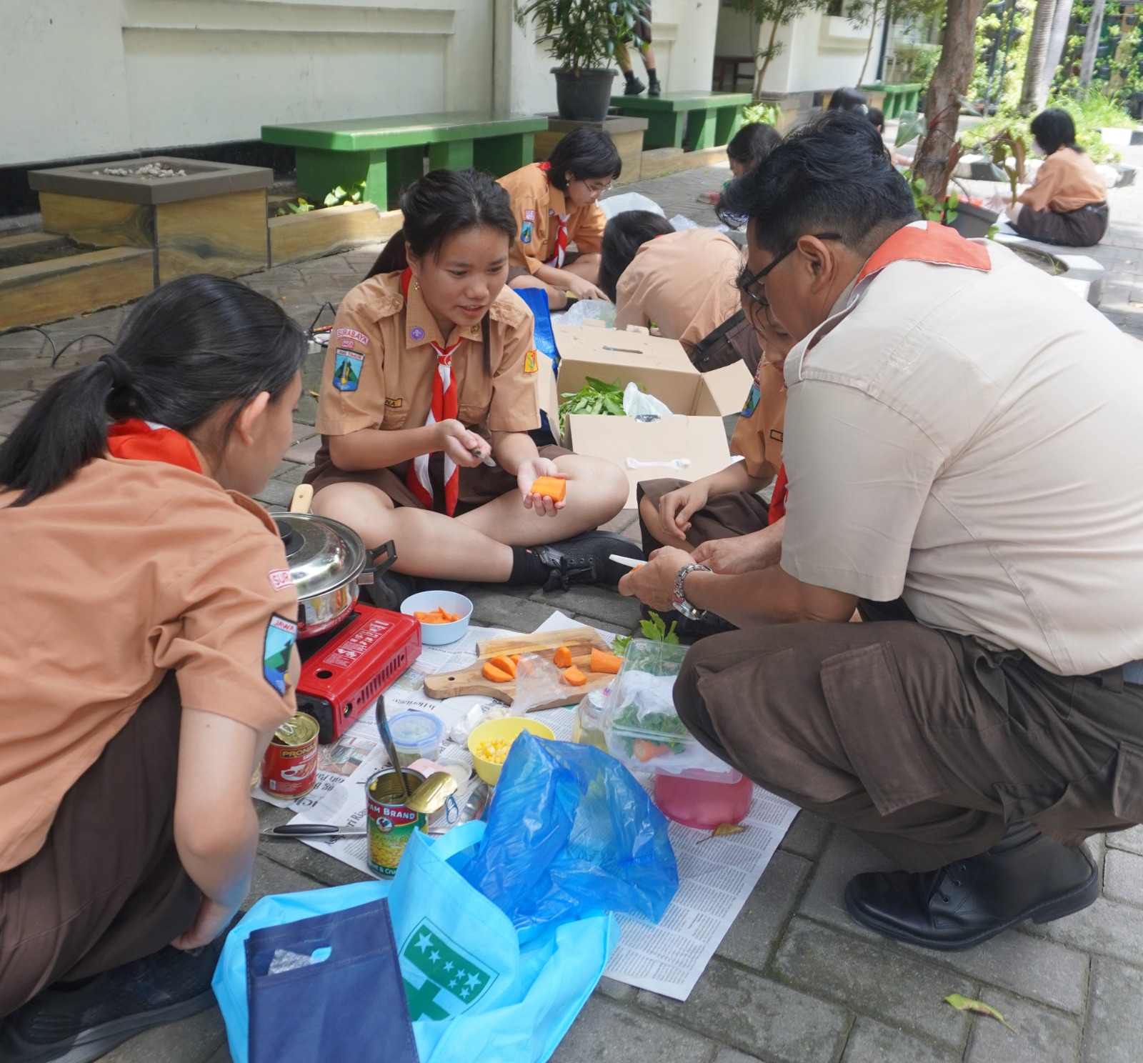 Surabaya, Kampus Ursulin—Sanmaris. Jumat, 21 November 2025 kegiatan pramuka disekolah sangat seru. Apa sih kegiatannya? Kegiatannya yaitu memasak ala pramuka bersama dengan regu. Kegiatan ini kita belajar kerja sama, mandiri, dan juga pantang menyerah. Setiap regu diminta untuk menghidangkan makanan sehat seperti sayur, nasi goreng, sup sehat, dll. Para anggota regu saling bekerja sama mulai dari menyiapkan bahan makanan, memasak, dan menyajikannya. Para anggota pramuka menjadi lebih terlatih kekompakannya.