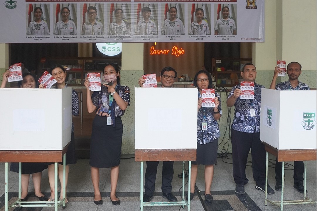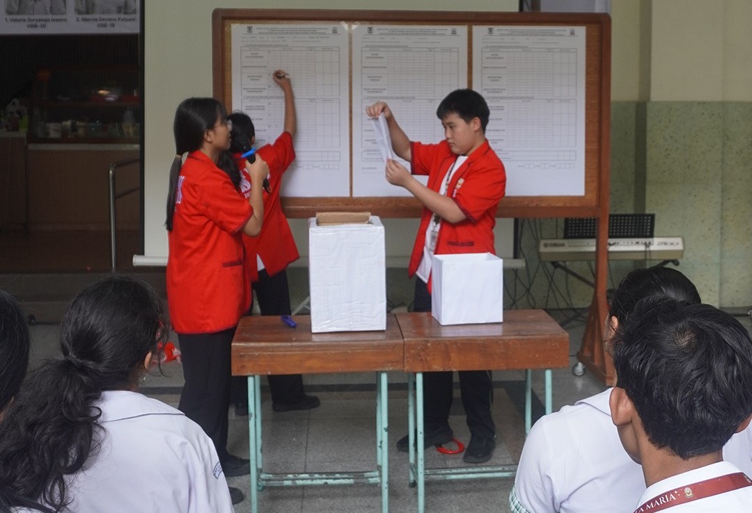 Setelah rangkaian kegiatan ini, seluruh siswa melakukan pencoblosan di kotak suara resmi dan menandai jari mereka dengan tinta, layaknya pemilu yang diadakan oleh negara. Pemilihan berlangsung bertahap : hari pertama untuk kelas 8, hari kedua kelas 7, dan hari ketiga kelas 9. Setiap suara yang masuk menjadi wujud nyata demokrasi disekolah. Kegiatan pemilihan Ketua OSIS tahun ini bukan sekadar rutinitas, melainkan pelajaran bermakna tentang keberanian, tanggung jawab, dan kepemimpinan. Dari pendopo yang menjadi saksi tiga hari penuh perjuangan, lahirlah pemimpin baru yang diharapkan mampu membawa SMP Santa Maria Surabaya melangkah semakin maju. Pemilihan ini menjadi bukti bahwa demokrasi bukan hanya tentang memilih, tetapi juga tentang membangun masa depan bersama.