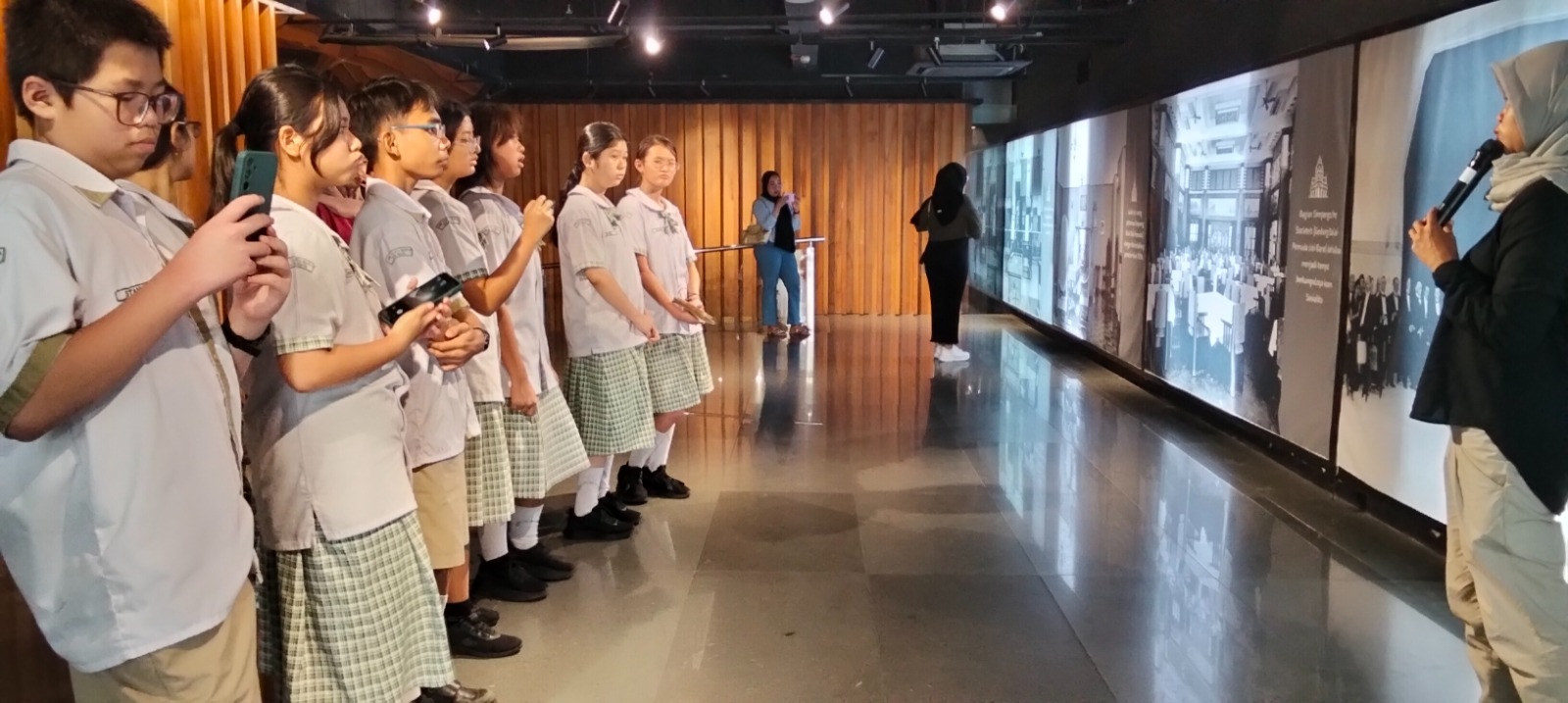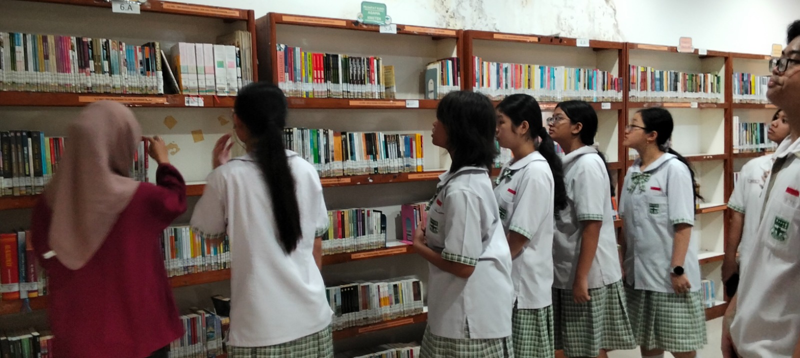 Surabaya, Kampus Ursulin – Sanmaris. Jumat, 12 Desember, seluruh anggota Duta Literasi berkesempatan berkunjung ke Perpustakaan Kota Surabaya, disertai dengan kunjungan ke PISA (Pusat Informasi Sahabat Anak), Rumah Bahasa, dan Balai Pemuda. Bagi anggota Duta Literasi yang gemar membaca, perpustakaan selalu terasa seperti rumah ketiga, tempat kami menemukan keheningan dan sejenak memperluas wawasan serta imajinasi melalui berbagai buku yang tersedia. Seperti di Perpustakaan Kota Surabaya yang kami kunjungi yang terletak di Jl. Gubernur Suryo No.15, Embong Kaliasin, Kec. Genteng, Surabaya, yang juga menghadirkan suasana tenang, meski menjadi sumber literasi dan inspirasi bagi banyak Arek-Arek Suroboyo. Kunjungan anggota Duta Literasi tersebut bertujuan untuk pengembangan lingkungan perpustakaan sekolah, juga untuk memperluas wawasan mereka. Di sana, kami mempelajari sistem pengelolaan perpustakaan yang terpadu dan diperkenalkan dengan Rumah Bahasa, PISA, serta sejarah Balai Pemuda.