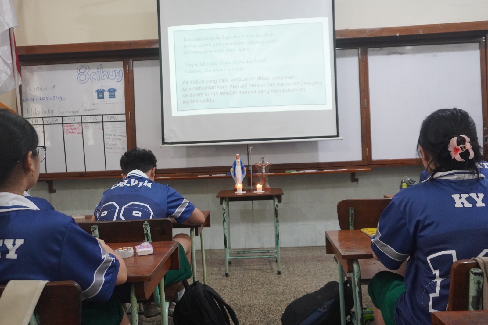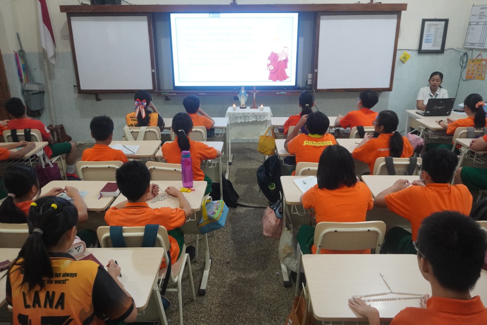 Surabaya, Kampus Ursulin Surabaya – Sanmaris. Rabu, 1 Oktober 2025 Bulan Oktober merupakan bulan Rosario, hal ini sudah ditetapkan oleh Gereja Katolik sejak tahun 1571. Bulan Oktober menjadi waktu khusus bagi umat Katolik untuk mendalami dan memperbanyak doa rosario sebagai bentuk penghormatan kepada Bunda Maria. Hari ini merupakan pelaksanaan pembukaan bulan rosario di SMP Santa Maria Surabaya. Kegiatan ini diawali dengan ibadat pembukaan yang dipandu oleh Tim Pastoral Sekolah. Murid-murid mengikuti ibadat pembukaan bulan Rosario dikelas masing-masing.