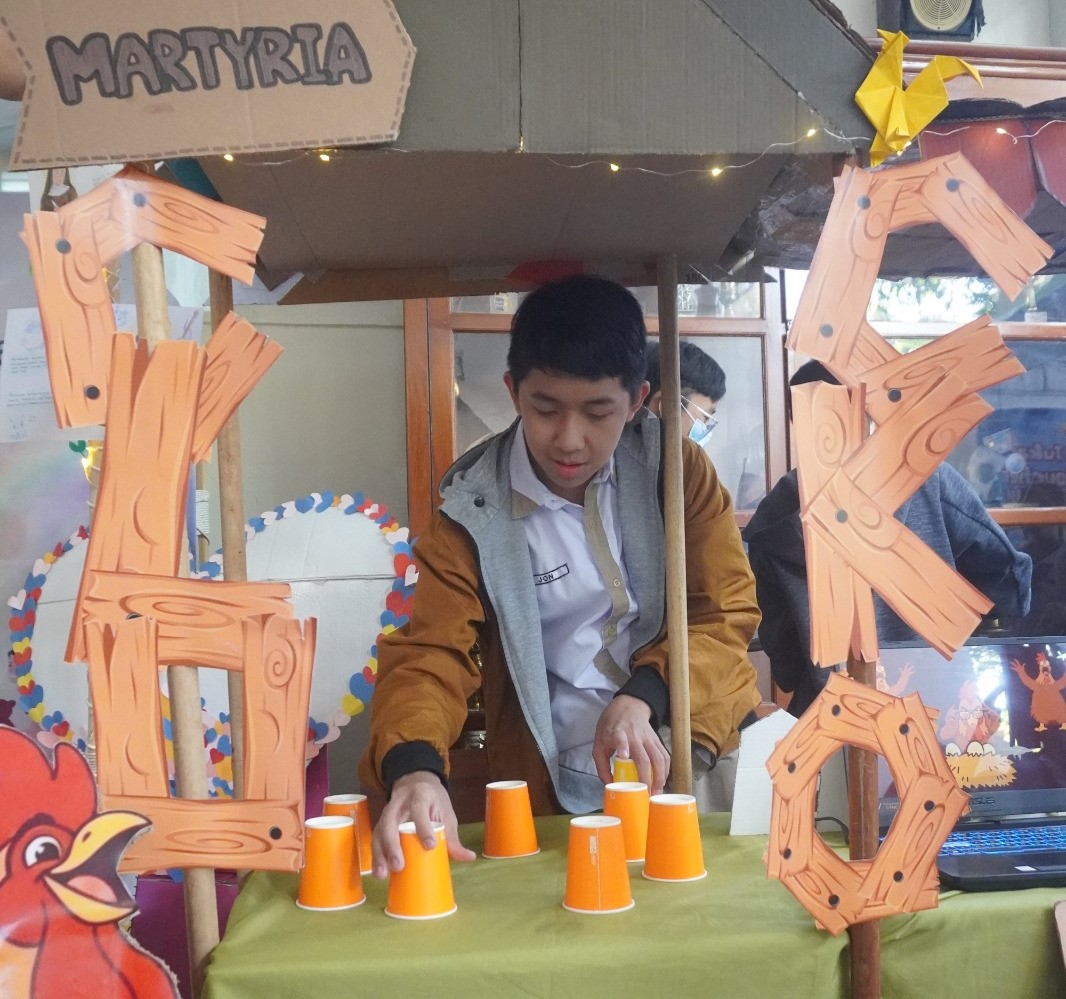 Setelah mereka selesai menjelaskan, saya diarahkan ke bagian selanjutnya yaitu game ular tangga yang memiliki tantangan tentang kehidupan bermasyarakat sehari-hari yang dilandasi dengan kasih. Game ini dapat dimainkan dengan minimal 2 orang tua maupun anak-anak. Saya menyukai game ini karena mengajarkan tentang kesabaran dan kekompakan. Hal yang dilakukan dalam game ini adalah satu orang harus memperagakan gerakan dan harus ditebak oleh pemain lain. Selain itu, dalam permainan ini kita juga beberapa kali harus menjawab pertanyaan yang diberikan oleh anak-anak kelas 9D. Setelah itu saya juga menonton anak – anak bermain musik dan booth dari kelas 9 yang lain. Setiap booth punya ciri khas masing-masing.